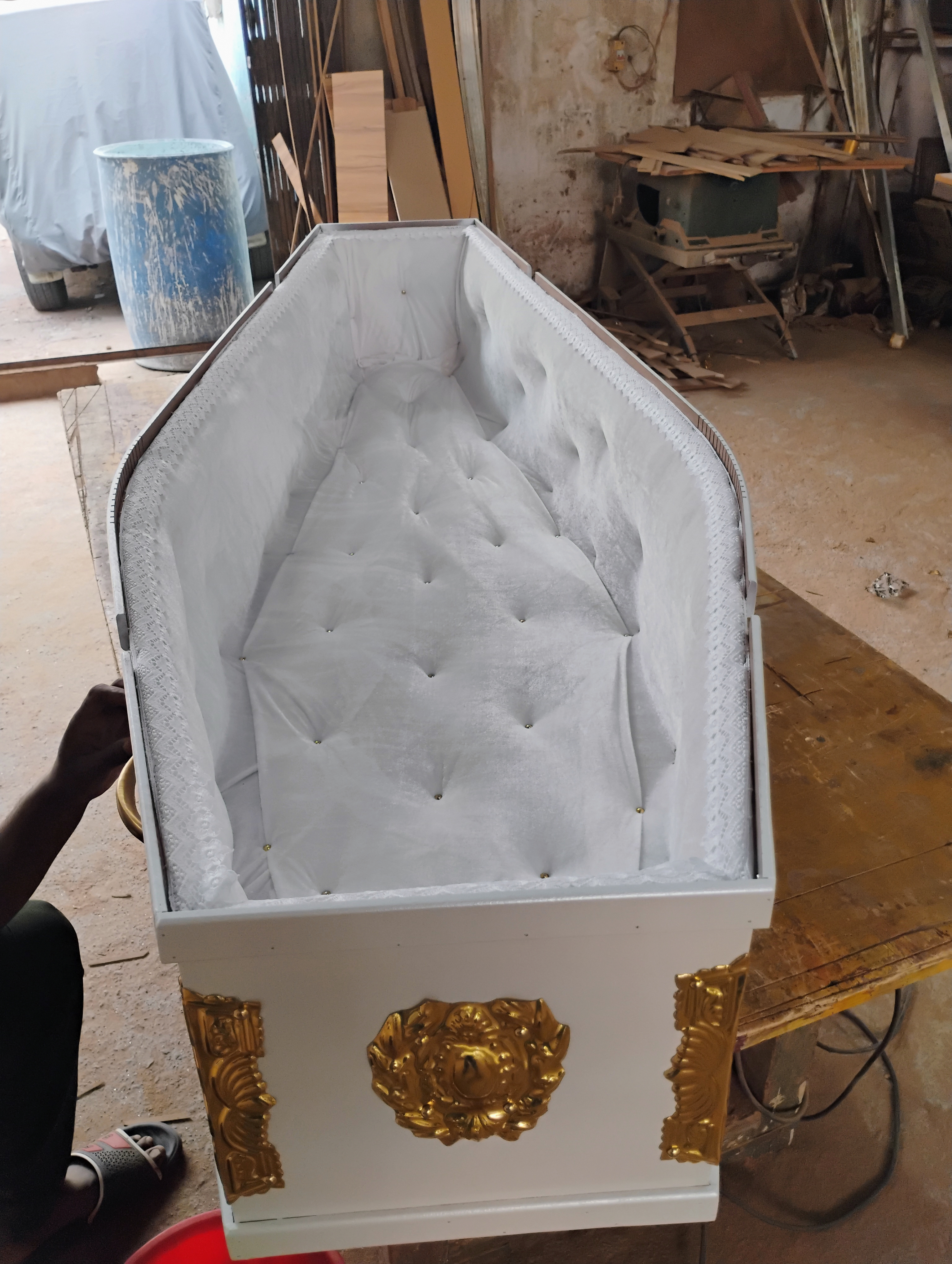 Pearl white full cross coffin with / without glass for face.